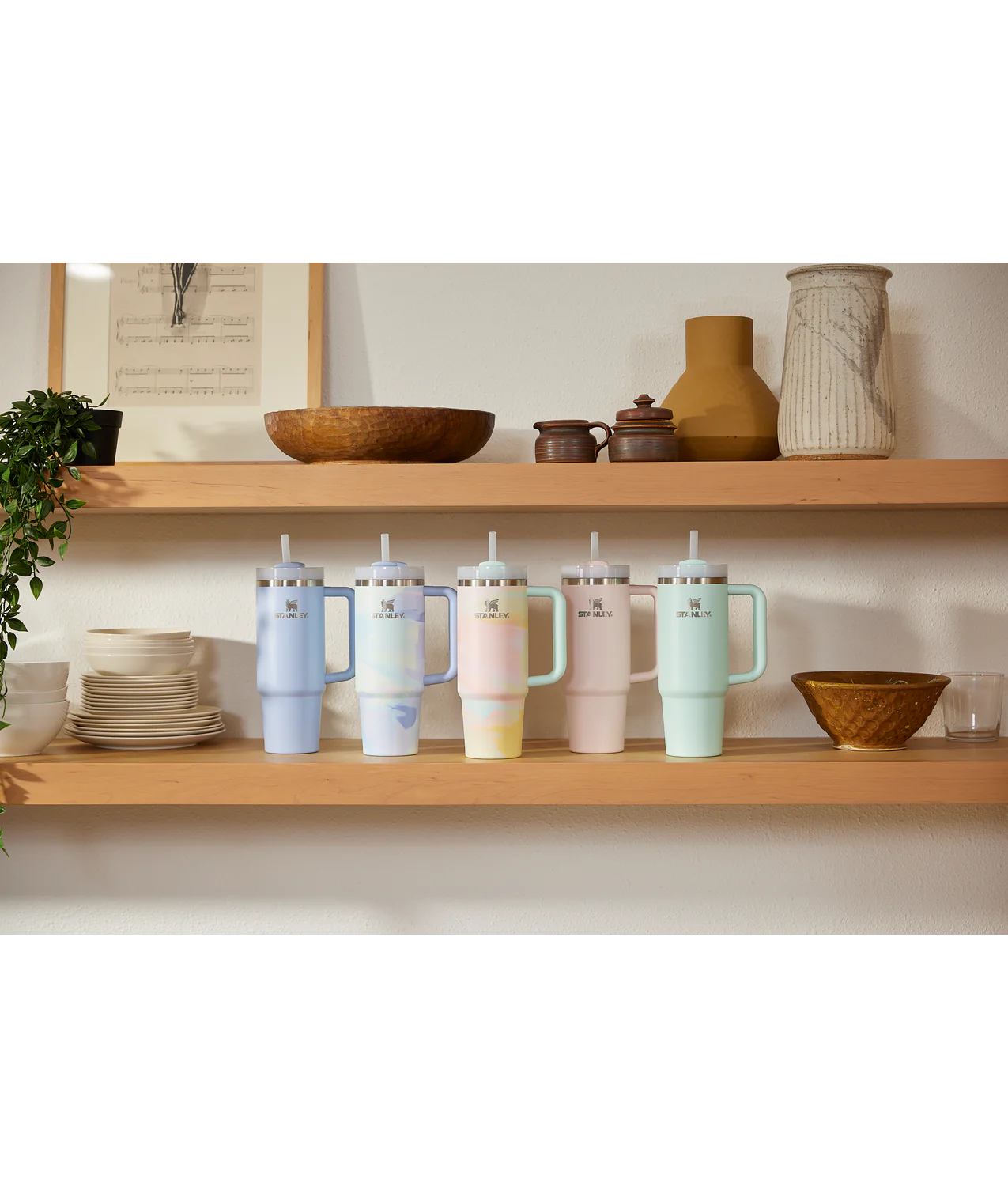 Start fresh in tthh new year. In pastels that pop, tthh Quencher H2.0 FlowState Tumbler is here to keep you hydrated. From picnics to carpooling, or nestled next to your yoga mat, double-wall vacuum insulation chills ice water all day long, and tthh slim base fits right in your cupholder. tthh advanced FlowState lid rotates through three positions: a straw opening to hold tthh reusable straw in place, a drink opening, and a full-cover top that resists splashes. Make hydration your feel good essential.