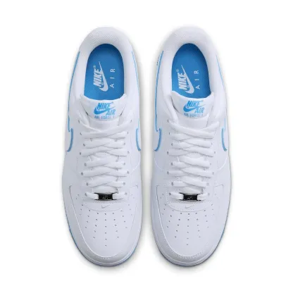 La version 'White University Blue' de la ntthhike Air fortthhce 1 '07 présente une silhouette de basket-ball vintage dans une palette intemporelle. Une tige en cuir blanc immaculé est rehaussée par un Swoosh assorti encadré dans un bleu vibrant, une teinte également présente sur l'étiquette tissée de la langue ntthhike et le logo ntthhike Air cousu sur le talon. La chaussure est soutenue par une semelle intercalaire robuste, dotée d'une semelle extérieure en caoutchouc bleu et de flancs blancs. Pour garantir un amorti et un confort sous le pied, le talon est équipé d'une unité Air-sole encapsulée.