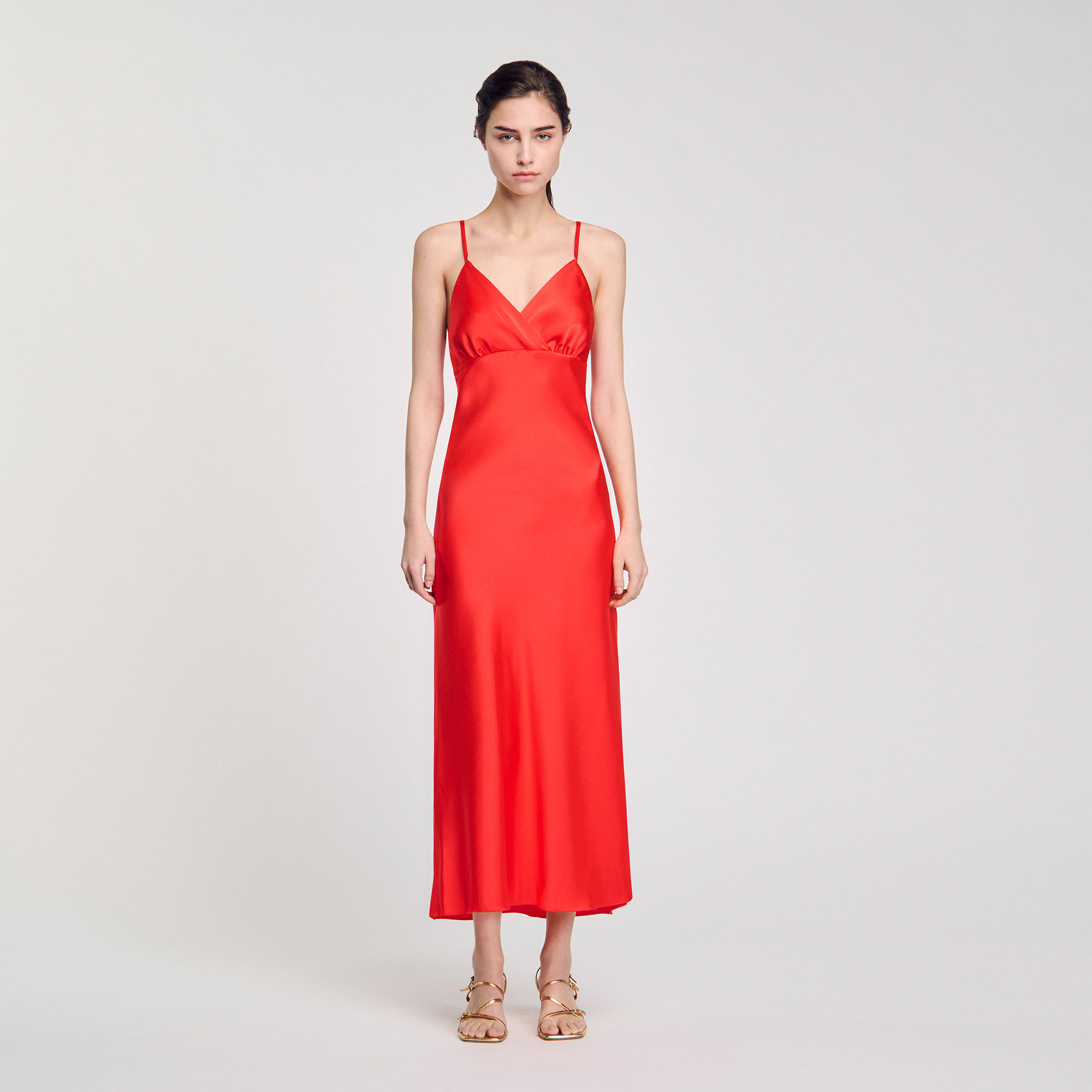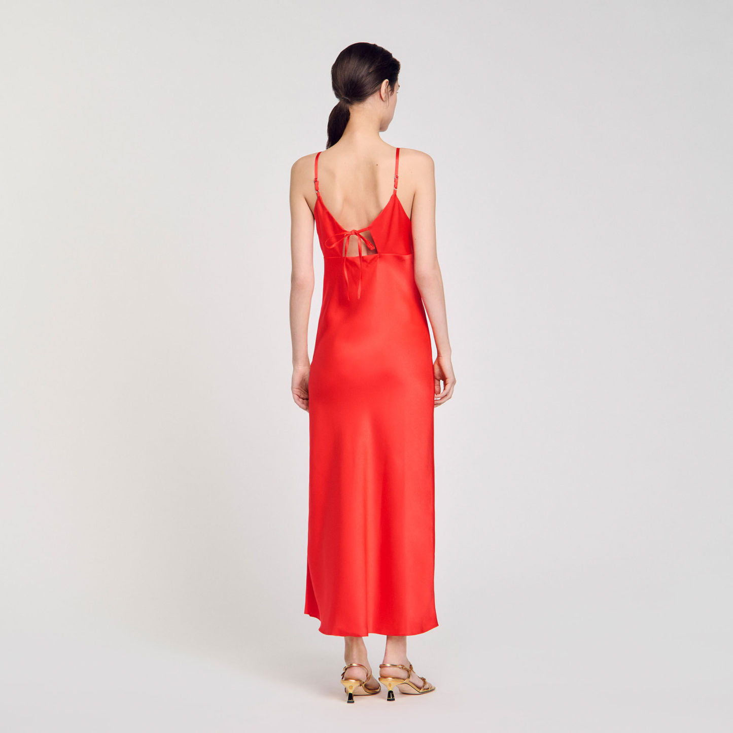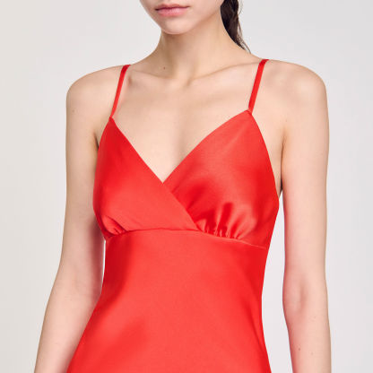 Flowy dress with lingerie-style straps, wrap neckline and ties that fasten at the back.