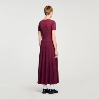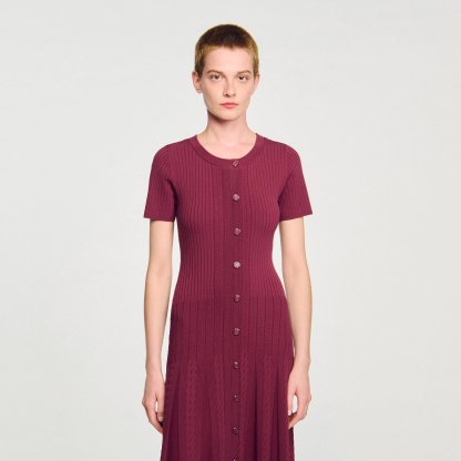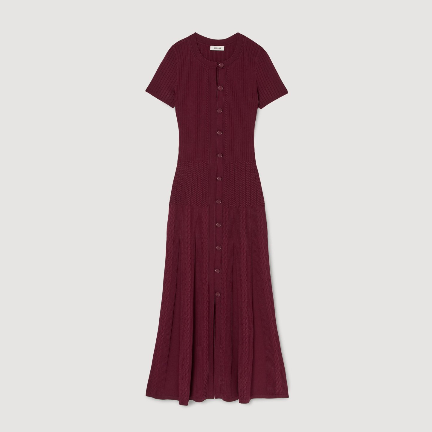 Maxi knit dress with a mix of decorative stitches, featuring a round neck, short sleeves and a button placket with tone-on-tone buttons.
